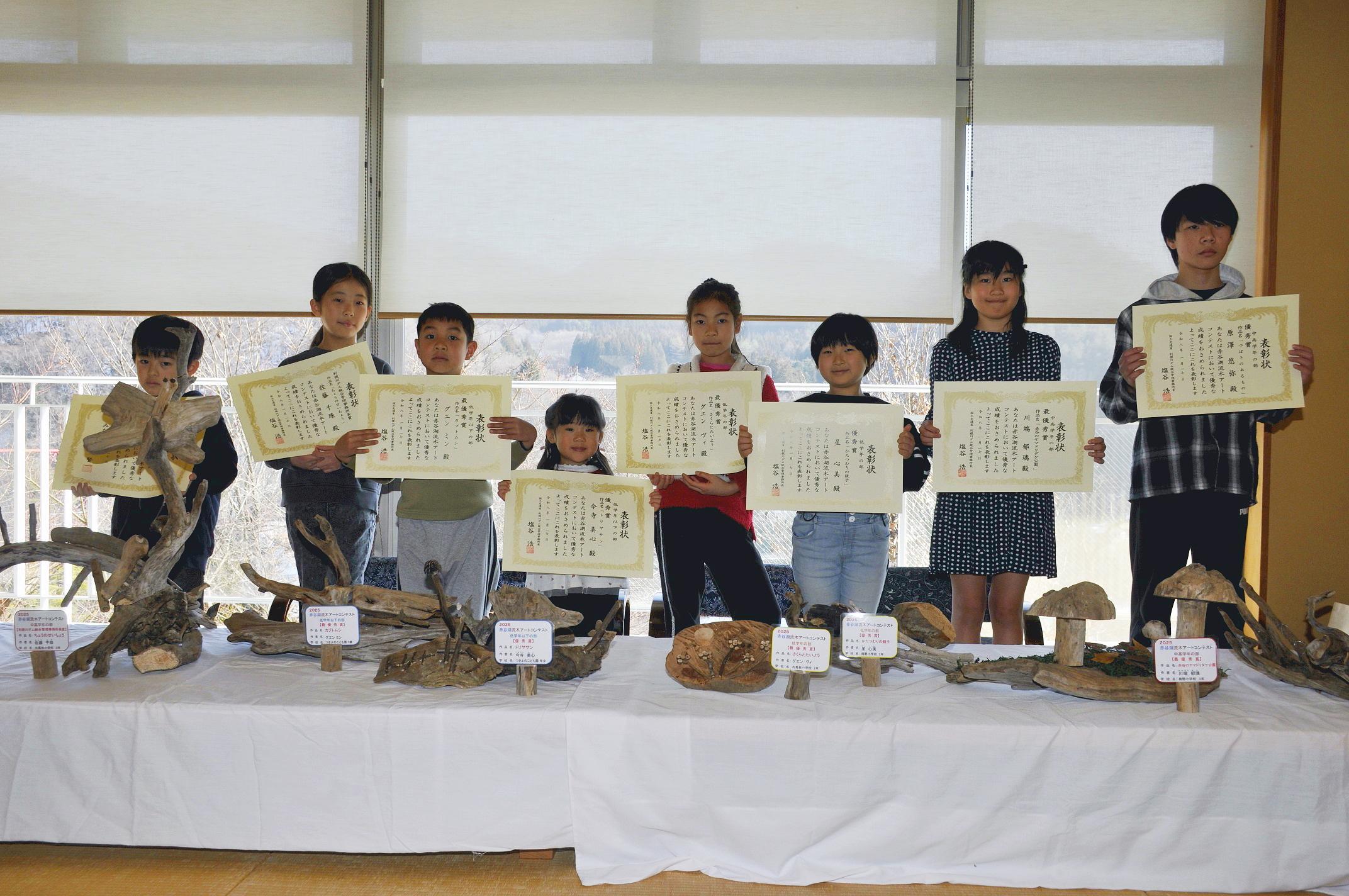 利根川ダム統合管理事務所相俣ダム管理支所(川上明支所長)主催の「赤谷湖流木アートコンテスト」の表彰式が1月17日、赤谷湖を望む猿ヶ京温泉まんてん星の湯で行われた。